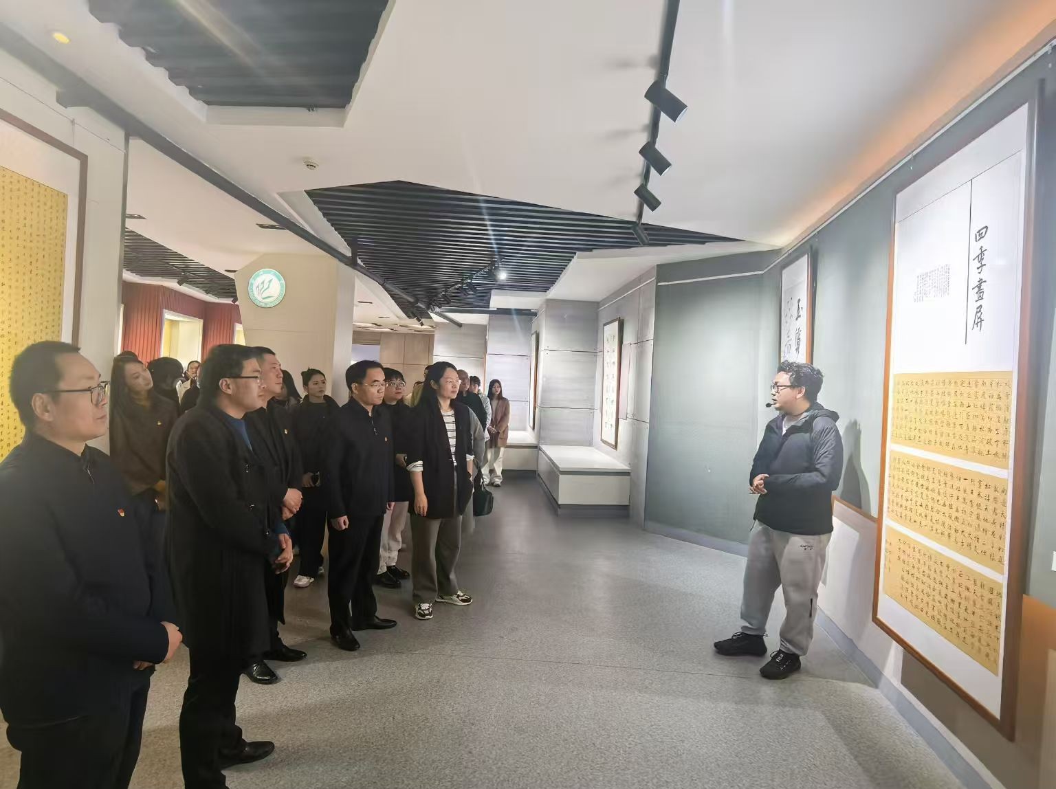 为深入学习贯彻党的二十届四中全会精神,进一步推进全面从严治党,提高党员干部廉洁意识,11月13日下午,拉斯·维加斯娱乐城官网 和美术与设计学院组织全体教师党员前往西校区文华苑美术馆“廉心焕彩·清风聊大”廉洁文化作品展,联合开展主题党日活动。
