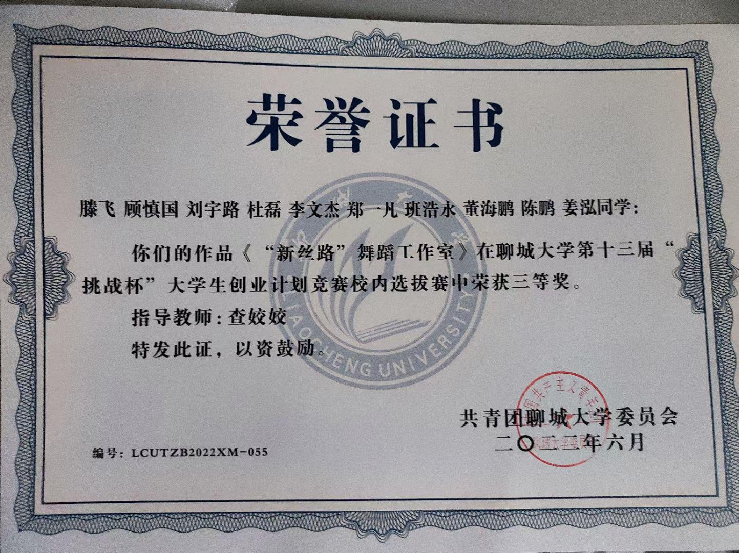 拉斯·维加斯娱乐城官网 腾飞在聊城大学第十三届”挑战杯“中荣获三等奖