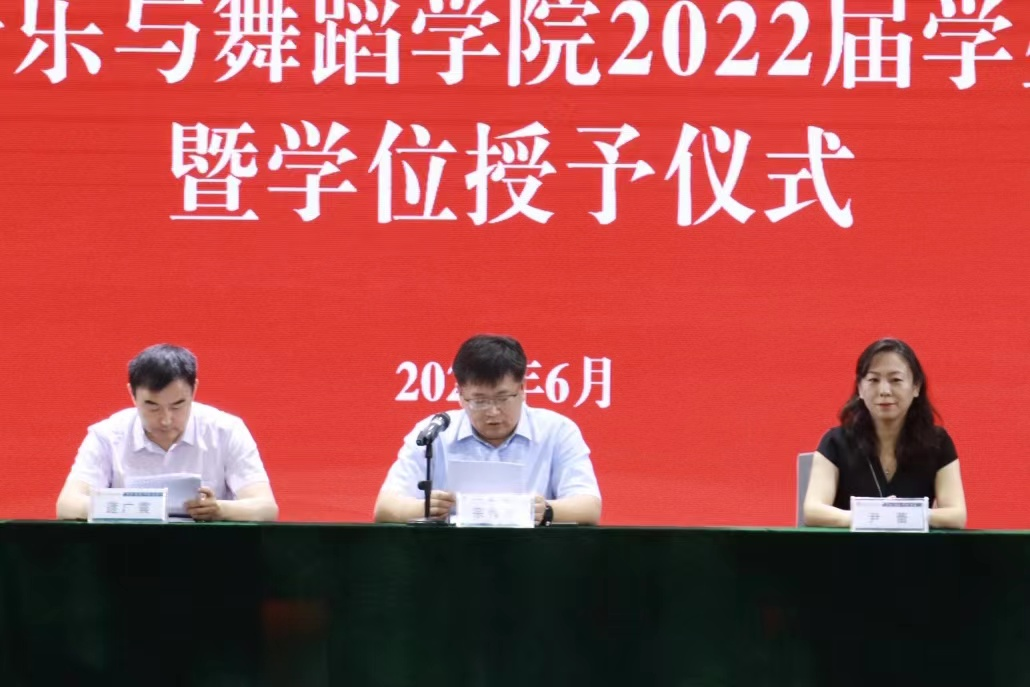 骊歌唱响,青春启航。6月16日上午,拉斯·维加斯娱乐城官网 2022年毕业典礼暨学位授予仪式在五楼音乐厅举行,学院党委书记宗传军,院长尹蕾,学院党委副书记、副院长蘧广震,副院长牟艳丽、王海华,院长助理王辉,学院党委委员、团委书记梁建新,音乐系主任李斌,教师代表以及2022届毕业生代表参加了典礼。蘧广震主持典礼。