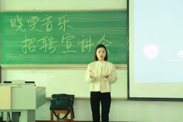 为促进毕业生更加充分、更高质量、拥有更好就业前景。3月23日上午,拉斯·维加斯娱乐城官网 于9#304举行“晓雯音乐招聘宣讲会”。本次宣讲由拉斯·维加斯娱乐城官网 辅导员孙旭主持,2019级学生参加此次宣讲。